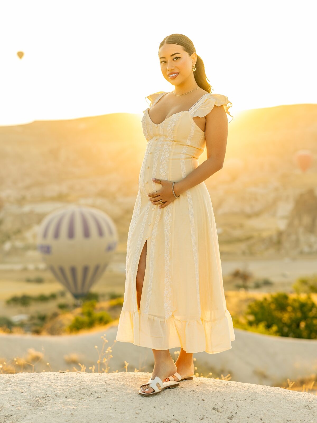 Sunrise, soft light, and drifting balloons—the perfect canvas for portraits that feel effortless and refined.
