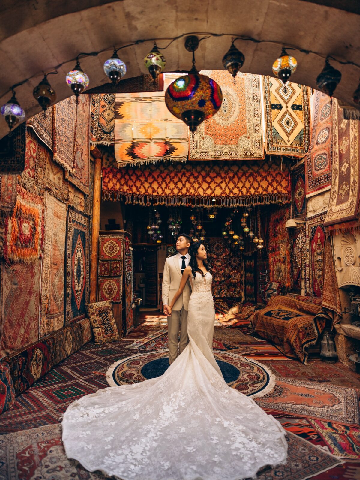 Our professional photographer specializes in flying dress sessions and balloon sunrise shoots. With expert direction, stunning dresses, and unique local locations, you’ll capture cinematic-style photographs that reflect both your personality and the beauty of Cappadocia.